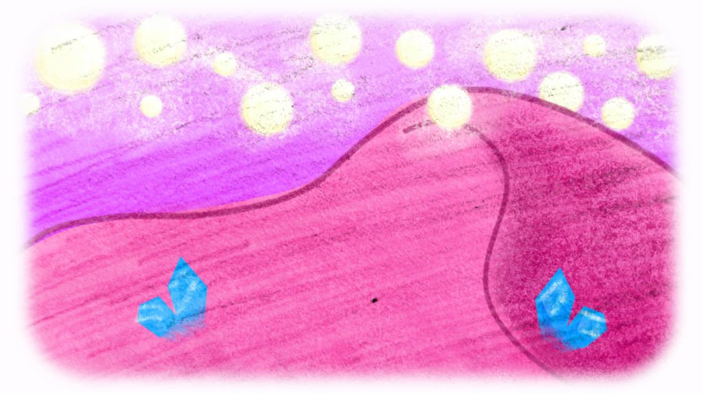 Caminaron sobre la arena caliente durante varios minutos. El polvo rosa se levantaba en pequeñas nubes con cada paso y el calor parecía filtrarse incluso a través de sus botas. Cuando por fin llegaron a las rocas, encontraron una grieta estrecha que proyectaba una sombra suficiente para esconderse del resplandor.