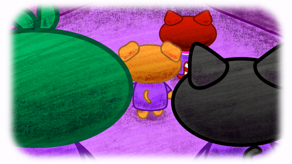 Sweet observaba todo con atención. No solo a las criaturas, sino a las lianas, al suelo irregular, a cómo incluso el viento parecía esquivar el centro del valle. Sacó su cuaderno con cuidado y empezó a dibujar sin sentarse, apoyándolo contra su brazo.