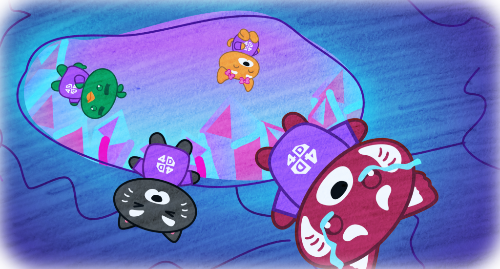 Esta vez se coordinaron. Limo esperó el momento preciso y lanzó una descarga mágica que debilitó al monstruo. Ember soltó otra onda sónica, dirigida al techo, quebrando parte de la estructura. Melanie pasó justo por debajo, provocando que la criatura la siguiera. Cuando estuvo en el punto exacto, Sweet dio la señal.