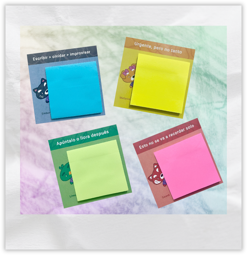 Ideales para recordatorios, mensajes o decorar tu espacio de trabajo.