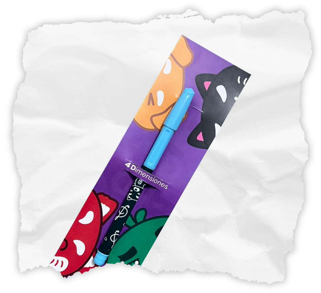 Cada diseño está inspirado en los personajes de 4 Dimensiones, de tinta azul punta fina.